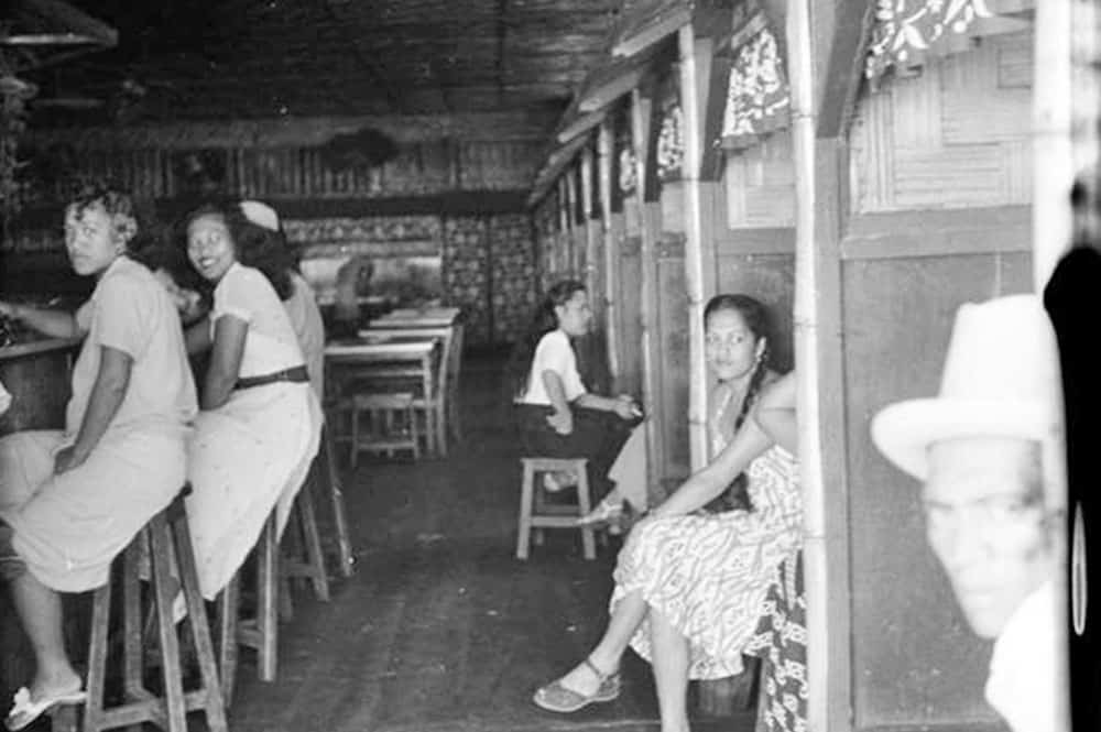 Dès que l’on pousse les fameuses portes saloon, on est tout de suite pris par l’atmosphère typique des îles qui y règne. L’odeur incomparable des couronnes de tiare tahiti et de tipanie se mélange à celle du monoï dont se sont enduits les filles. A l’intérieur, se trouve un immense bar en bois disposé en ovale autour duquel se succèdent les boxes. Au milieu du bar, trônait l’estrade avec l’orchestre. Devant il y avait une grande piste de danse et tout à fait à l’arrière, une petite estrade pour les danseurs.
