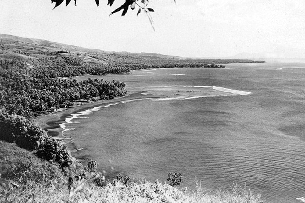 Au milieu du vingtième siècle, le Tahara’a n’était alors accessible que par une étroite route où se croisaient difficilement deux véhicules. Les arbres encore jeunes accrochés à la falaise n’offraient pas encore l’aspect vert d’aujourd’hui. La vue s’en trouvait très dégagée tout au loin de la route et le belvédère avait pris le nom de banc du gouverneur. Ce serait Emile de Curton qui gouverna entre novembre 1940 et juin 1941 et dont on dit qu’il appréciait beaucoup le point de vue du Tahara’a. Composé d’une pierre brute, ce banc se trouvait coincé à l’étroit entre la route et le bord du Tahara’a tout proche. Il ne fallait surtout pas rater son virage…